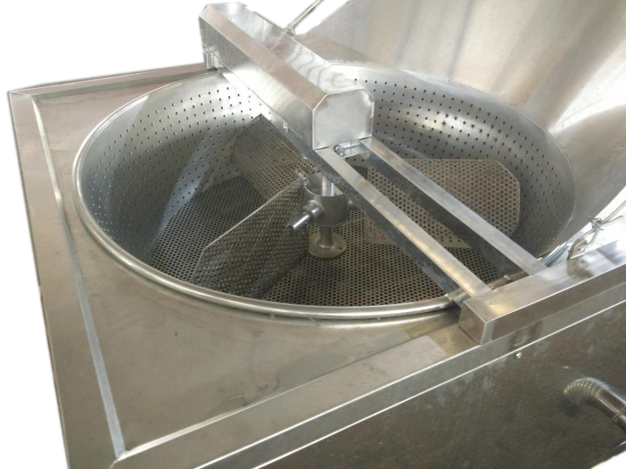 環(huán)使用。由此保持炸制油的清潔,延長油的使用周期降低生產(chǎn)成本。油泡的上下翻轉(zhuǎn)攪動由攪拌機構(gòu)自動完成。油泡